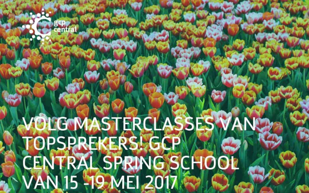 Ook dit jaar organiseren we de GCP Central Spring School. In de week van 15 tot 19 mei 2017 organiseren we diverse verdiepingssessies en masterclasses op niveau door topsprekers. Voor starters met ambitie en voor ervaren professionals die snappen dat stilstand achteruitgang is. Investeer in jezelf en kom naar een van de masterclasses!